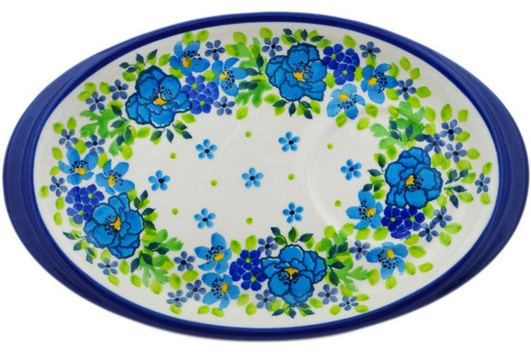 This Blue Kissed Petals 9" Saucer was handmade and hand decorated in Boleslawiec, Poland by skilled artisans according to old traditional methods. This is a Polish pottery Signature Unikat, which means that it has been hand painted with both sponges and brushes and it is signed by the artist who painted it. Unikat pieces are the most intricate works of art. Larger Unikat items take hours of very careful work to finish. This Polish stoneware is microwave, dishwasher, freezer, and oven safe up to 480°F. It does not contain lead or cadmium. It is part of the Blue Kissed Petals Collection.