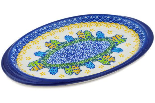 This Riverside Village 9" Saucer was handmade and hand decorated in Boleslawiec, Poland by skilled artisans according to old traditional methods. This is a Polish pottery Signature Unikat, which means that it has been hand painted with both sponges and brushes and it is signed by the artist who painted it. Unikat pieces are the most intricate works of art. Larger Unikat items take hours of very careful work to finish. This Polish stoneware is microwave, dishwasher, freezer, and oven safe up to 480°F. It does not contain lead or cadmium. It is part of the Riverside Village Collection.