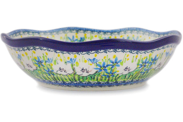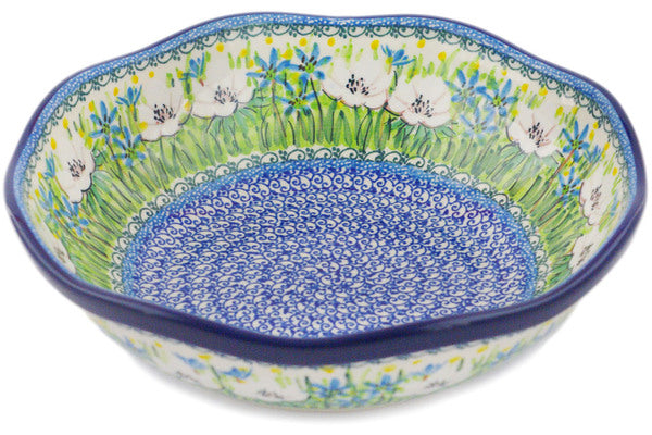 This Spring Morning 10" Scalloped Bowl was handmade and hand decorated in Boleslawiec, Poland by skilled artisans according to old traditional methods. This is a Polish pottery Signature Unikat, which means that it has been hand painted with both sponges and brushes and it is signed by the artist who painted it. Unikat pieces are the most intricate works of art. Larger Unikat items take hours of very careful work to finish. This Polish stoneware is microwave, dishwasher, freezer, and oven safe up to 480°F. It does not contain lead or cadmium. It is part of the Spring Morning Collection.