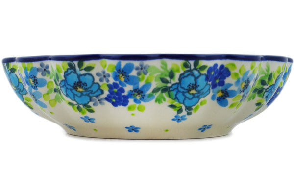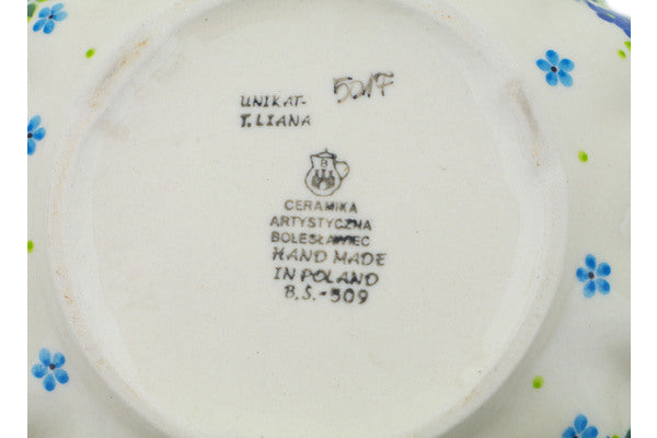 This Blue Kissed Petals 7" Scalloped Bowl was handmade and hand decorated in Boleslawiec, Poland by skilled artisans according to old traditional methods. This is a Polish pottery Signature Unikat, which means that it has been hand painted with both sponges and brushes and it is signed by the artist who painted it. Unikat pieces are the most intricate works of art. Larger Unikat items take hours of very careful work to finish. This Polish stoneware is microwave, dishwasher, freezer, and oven safe up to 480°F. It does not contain lead or cadmium. It is part of the Blue Kissed Petals Collection.