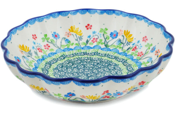 This Spring Sights 7" Scalloped Bowl was handmade and hand decorated in Boleslawiec, Poland by skilled artisans according to old traditional methods. This is a Polish pottery Signature Unikat, which means that it has been hand painted with both sponges and brushes and it is signed by the artist who painted it. Unikat pieces are the most intricate works of art. Larger Unikat items take hours of very careful work to finish. This Polish stoneware is microwave, dishwasher, freezer, and oven safe up to 480°F. It does not contain lead or cadmium. It is part of the Spring Sights Collection.