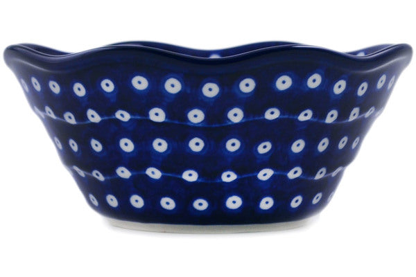 This Blue Eyes 8" Scalloped Bowl was handmade and hand decorated in Boleslawiec, Poland by skilled artisans according to old traditional methods. This Polish stoneware is microwave, dishwasher, freezer, and oven safe up to 480°F. It does not contain lead or cadmium. It is part of the Blue Eyes Collection.