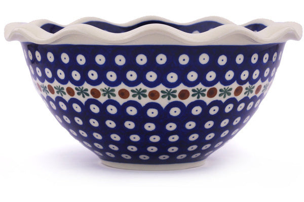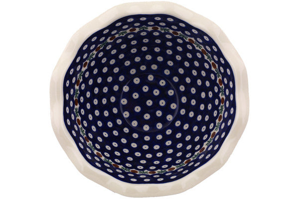 This Mosquito 9" Scalloped Bowl was handmade and hand decorated in Boleslawiec, Poland by skilled artisans according to old traditional methods. This Polish stoneware is microwave, dishwasher, freezer, and oven safe up to 480°F. It does not contain lead or cadmium. It is part of the Mosquito Collection.