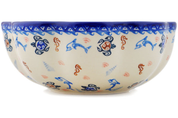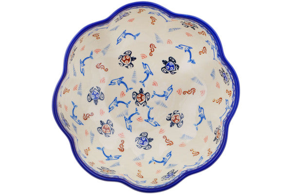 This Hawaiian Sea Turtle - Honu 10" Scalloped Fluted Bowl was handmade and hand decorated in Boleslawiec, Poland by skilled artisans according to old traditional methods. This Polish stoneware is microwave, dishwasher, freezer, and oven safe up to 480°F. It does not contain lead or cadmium. It is part of the Hawaiian Sea Turtle - Honu Collection.