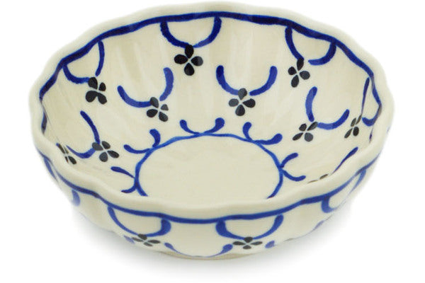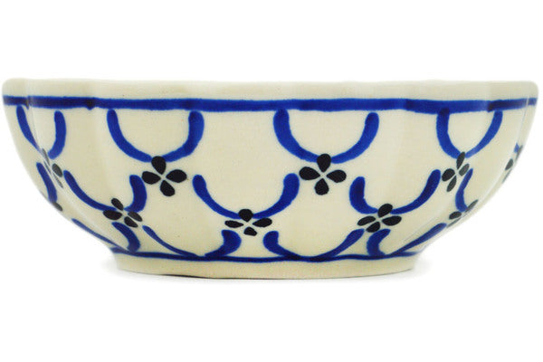 This Garden Lattice 5" Scalloped Fluted Bowl was handmade and hand decorated in Boleslawiec, Poland by skilled artisans according to old traditional methods. This Polish stoneware is microwave, dishwasher, freezer, and oven safe up to 480°F. It does not contain lead or cadmium. It is part of the Garden Lattice Collection.