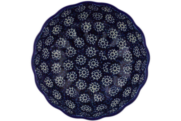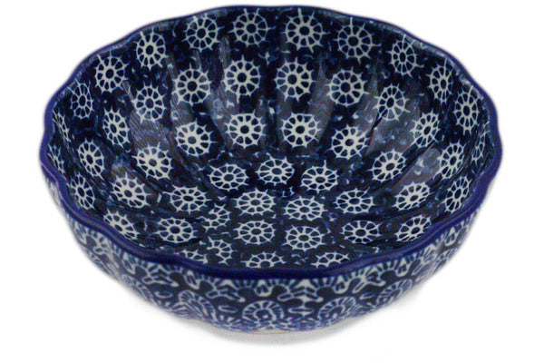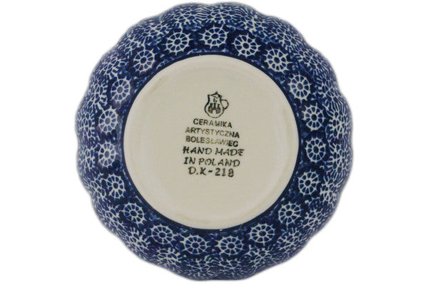 This Night At Sea 5" Scalloped Fluted Bowl was handmade and hand decorated in Boleslawiec, Poland by skilled artisans according to old traditional methods. This Polish stoneware is microwave, dishwasher, freezer, and oven safe up to 480°F. It does not contain lead or cadmium. It is part of the Night At Sea Collection.