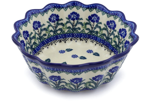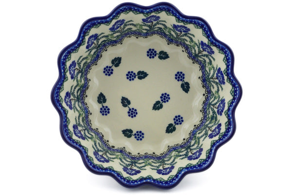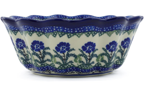 This Blackberry Blooms 7" Scalloped Fluted Bowl was handmade and hand decorated in Boleslawiec, Poland by skilled artisans according to old traditional methods. This Polish stoneware is microwave, dishwasher, freezer, and oven safe up to 480°F. It does not contain lead or cadmium. It is part of the Blackberry Blooms Collection.