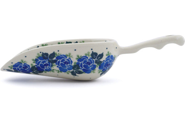This Blue Rose 9" Scoop was handmade and hand decorated in Boleslawiec, Poland by skilled artisans according to old traditional methods. This Polish stoneware is microwave, dishwasher, freezer, and oven safe up to 480°F. It does not contain lead or cadmium. It is part of the Blue Rose Collection.
