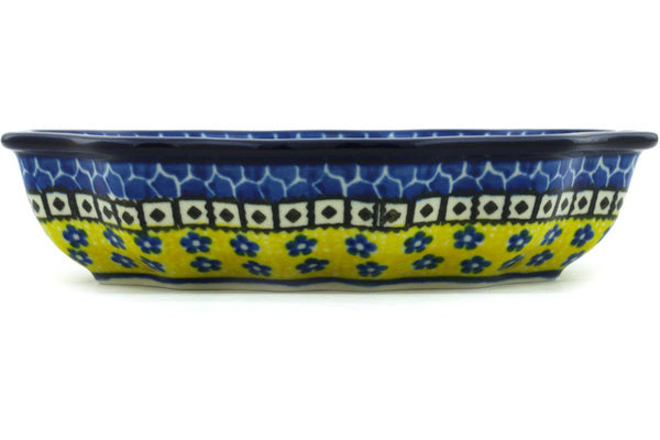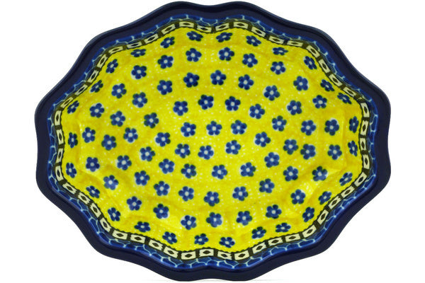 This Sunburst Daisies 7" Serving Bowl was handmade and hand decorated in Boleslawiec, Poland by skilled artisans according to old traditional methods. This Polish stoneware is microwave, dishwasher, freezer, and oven safe up to 480°F. It does not contain lead or cadmium. It is part of the Sunburst Daisies Collection.