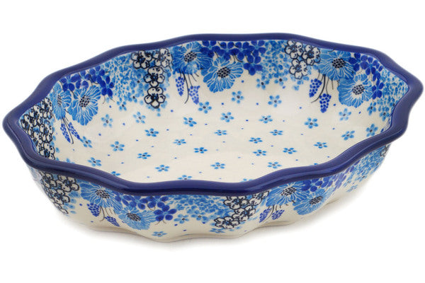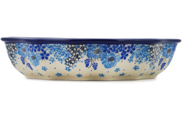 This Morning Glory 9" Serving Bowl was handmade and hand decorated in Boleslawiec, Poland by skilled artisans according to old traditional methods. This is a Polish pottery Signature Unikat, which means that it has been hand painted with both sponges and brushes and it is signed by the artist who painted it. Unikat pieces are the most intricate works of art. Larger Unikat items take hours of very careful work to finish. This Polish stoneware is microwave, dishwasher, freezer, and oven safe up to 480°F. It does not contain lead or cadmium. It is part of the Morning Glory Collection.