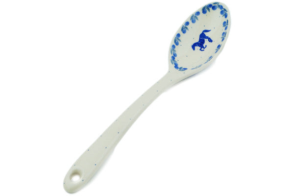 This Horse Gallop 13" Serving Spoon was handmade and hand decorated in Boleslawiec, Poland by skilled artisans according to old traditional methods. This Polish stoneware is microwave, dishwasher, freezer, and oven safe up to 480°F. It does not contain lead or cadmium. It is part of the Horse Gallop Collection.
