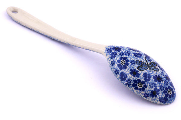 This Misty Dragonfly 13" Serving Spoon was handmade and hand decorated in Boleslawiec, Poland by skilled artisans according to old traditional methods. This Polish stoneware is microwave, dishwasher, freezer, and oven safe up to 480°F. It does not contain lead or cadmium. It is part of the Misty Dragonfly Collection.