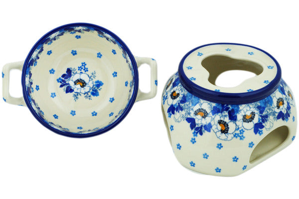 This Blue Spring Set for Fondue was handmade and hand decorated in Boleslawiec, Poland by skilled artisans according to old traditional methods. This Polish stoneware is microwave, dishwasher, freezer, and oven safe up to 480°F. It does not contain lead or cadmium. It is part of the Blue Spring Collection.