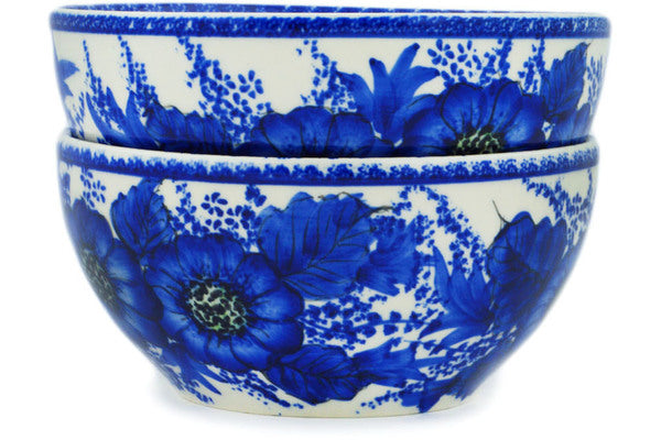 This Blue Poppy Dream Set of 2 Bowls was handmade and hand decorated in Boleslawiec, Poland by skilled artisans according to old traditional methods. This is a Polish pottery Signature Unikat, which means that it has been hand painted with both sponges and brushes and it is signed by the artist who painted it. Unikat pieces are the most intricate works of art. Larger Unikat items take hours of very careful work to finish. This Polish stoneware is microwave, dishwasher, freezer, and oven safe up to 480°F. It does not contain lead or cadmium. It is part of the Blue Poppy Dream Collection.