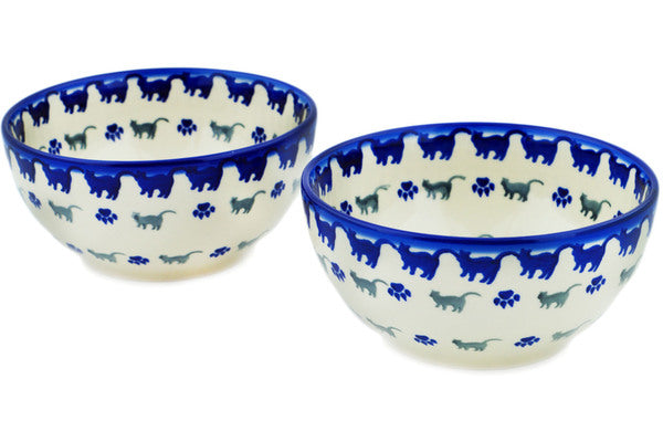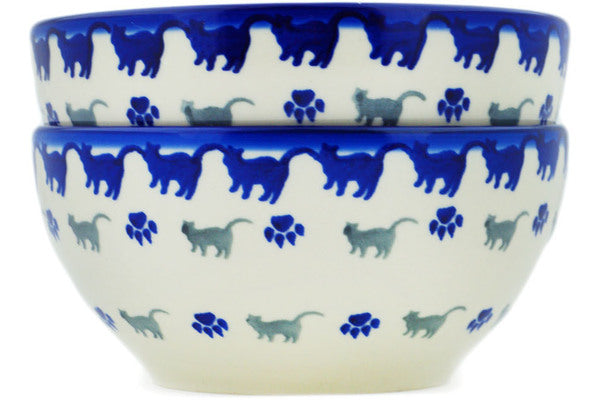 This Boo Boo Kitty Paws Set of 2 Bowls was handmade and hand decorated in Boleslawiec, Poland by skilled artisans according to old traditional methods. This Polish stoneware is microwave, dishwasher, freezer, and oven safe up to 480°F. It does not contain lead or cadmium. It is part of the Boo Boo Kitty Paws Collection.