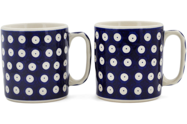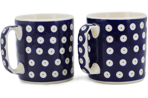 This Blue Eyed Peacock Set of 2 Mugs was handmade and hand decorated in Boleslawiec, Poland by skilled artisans according to old traditional methods. This Polish stoneware is microwave, dishwasher, freezer, and oven safe up to 480°F. It does not contain lead or cadmium. It is part of the Blue Eyed Peacock Collection.