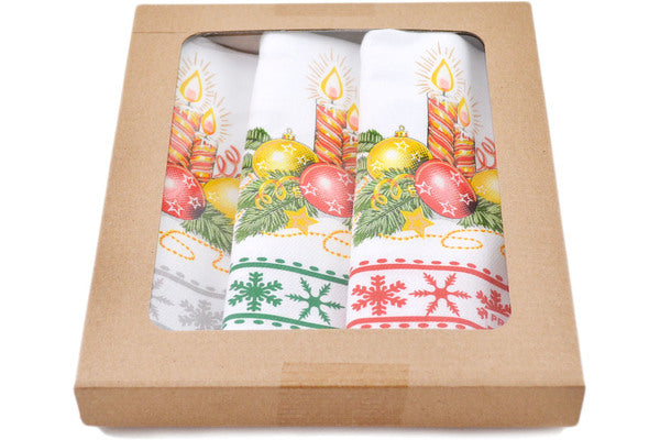 This Twinkling Holiday Radiance 24" towel kitchen set of 3 was handmade and hand decorated in Boleslawiec, Poland by skilled artisans according to old traditional methods. This Polish stoneware is microwave, dishwasher, freezer, and oven safe up to 480°F. It does not contain lead or cadmium. It is part of the Twinkling Holiday Radiance Collection.