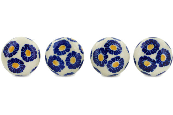 This Blue Zinnia Set of 4 Drawer Pull Knobs was handmade and hand decorated in Boleslawiec, Poland by skilled artisans according to old traditional methods. This Polish stoneware is microwave, dishwasher, freezer, and oven safe up to 480°F. It does not contain lead or cadmium. It is part of the Blue Zinnia Collection.