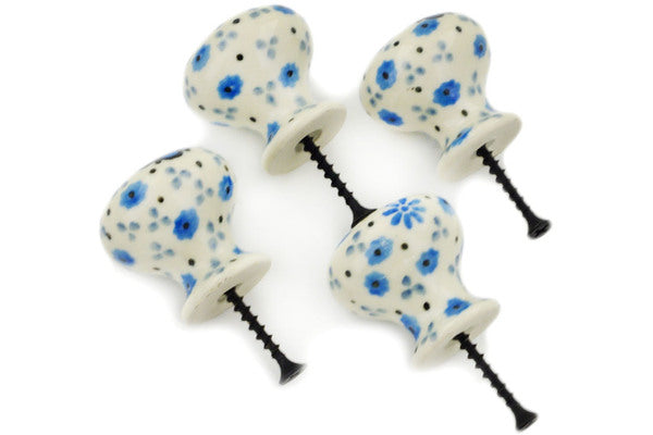 This Dance With Joy Set of 4 Drawer Pull Knobs was handmade and hand decorated in Boleslawiec, Poland by skilled artisans according to old traditional methods. This Polish stoneware is microwave, dishwasher, freezer, and oven safe up to 480°F. It does not contain lead or cadmium. It is part of the Dance With Joy Collection.