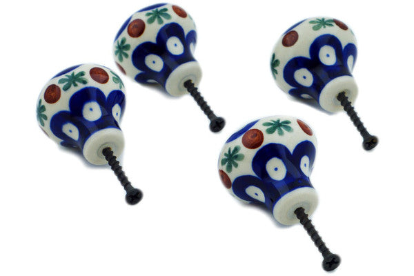 This Mosquito Set of 4 Drawer Pull Knobs was handmade and hand decorated in Boleslawiec, Poland by skilled artisans according to old traditional methods. This Polish stoneware is microwave, dishwasher, freezer, and oven safe up to 480°F. It does not contain lead or cadmium. It is part of the Mosquito Collection.