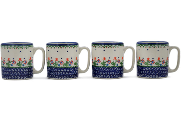 This Spring Flowers Set of 4 Mugs was handmade and hand decorated in Boleslawiec, Poland by skilled artisans according to old traditional methods. This Polish stoneware is microwave, dishwasher, freezer, and oven safe up to 480°F. It does not contain lead or cadmium. It is part of the Spring Flowers Collection.