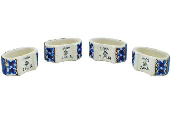 This Cobalt Poppies Set of 4 Napkin Rings was handmade and hand decorated in Boleslawiec, Poland by skilled artisans according to old traditional methods. This is a Polish pottery Signature Unikat, which means that it has been hand painted with both sponges and brushes and it is signed by the artist who painted it. Unikat pieces are the most intricate works of art. Larger Unikat items take hours of very careful work to finish. This Polish stoneware is microwave, dishwasher, freezer, and oven safe up to 480°F. It does not contain lead or cadmium. It is part of the Cobalt Poppies Collection.