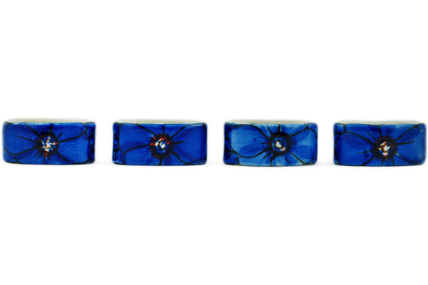 Set of 4 Napkin Rings Cobalt Poppies Theme UNIKAT