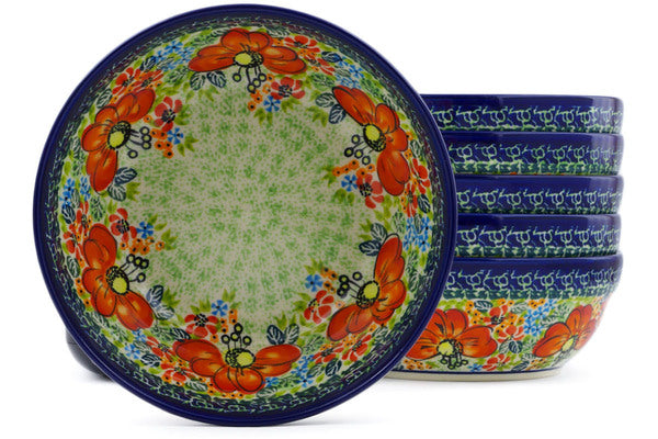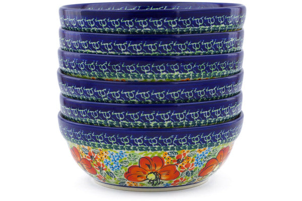 This Garden Meadow Set of 6 Bowls was handmade and hand decorated in Boleslawiec, Poland by skilled artisans according to old traditional methods. This is a Polish pottery Signature Unikat, which means that it has been hand painted with both sponges and brushes and it is signed by the artist who painted it. Unikat pieces are the most intricate works of art. Larger Unikat items take hours of very careful work to finish. This Polish stoneware is microwave, dishwasher, freezer, and oven safe up to 480°F. It does not contain lead or cadmium. It is part of the Garden Meadow Collection.