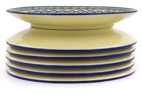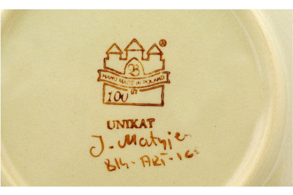 This Evangeline Set of 6 Plates was handmade and hand decorated in Boleslawiec, Poland by skilled artisans according to old traditional methods. This is a Polish pottery Signature Unikat, which means that it has been hand painted with both sponges and brushes and it is signed by the artist who painted it. Unikat pieces are the most intricate works of art. Larger Unikat items take hours of very careful work to finish. This Polish stoneware is microwave, dishwasher, freezer, and oven safe up to 480°F. It does not contain lead or cadmium. It is part of the Evangeline Collection.