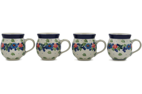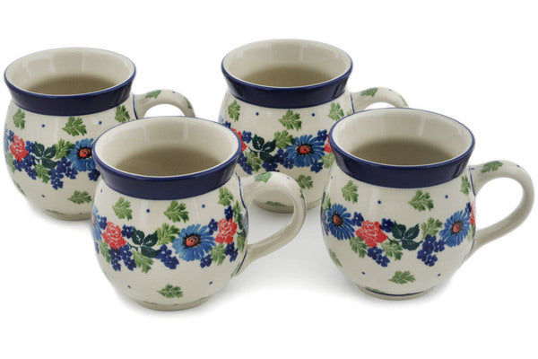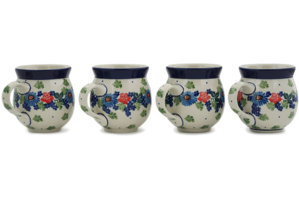 This Countryside Floral Bloom Set of Four 12 oz Bubble Mugs was handmade and hand decorated in Boleslawiec, Poland by skilled artisans according to old traditional methods. This Polish stoneware is microwave, dishwasher, freezer, and oven safe up to 480°F. It does not contain lead or cadmium. It is part of the Countryside Floral Bloom Collection.