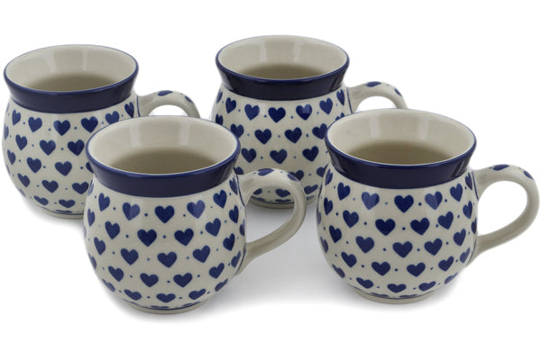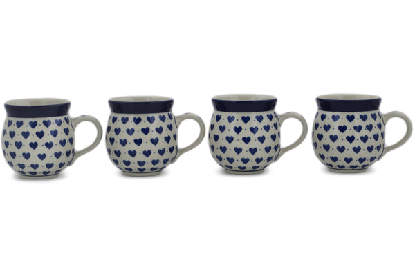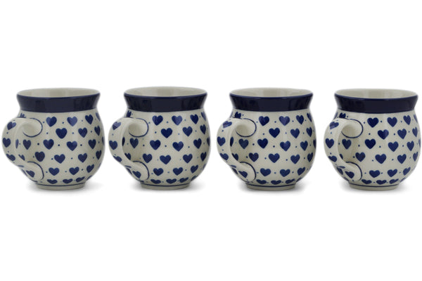 This Hearts Delight Set of Four 12 oz Bubble Mugs was handmade and hand decorated in Boleslawiec, Poland by skilled artisans according to old traditional methods. This Polish stoneware is microwave, dishwasher, freezer, and oven safe up to 480°F. It does not contain lead or cadmium. It is part of the Hearts Delight Collection.