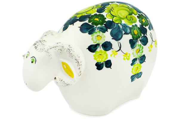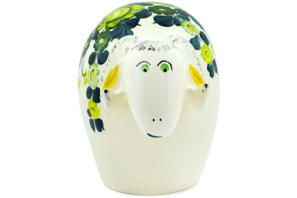 This Green Wave 11" Sheep Figurine was handmade and hand decorated in Boleslawiec, Poland by skilled artisans according to old traditional methods. This Polish stoneware is microwave, dishwasher, freezer, and oven safe up to 480°F. It does not contain lead or cadmium. It is part of the Green Wave Collection.