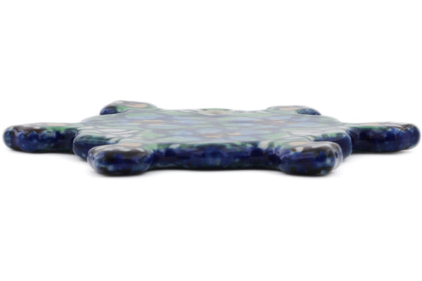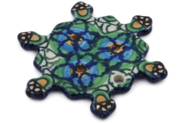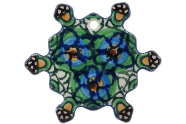 This Mardi Gras 3" Snowflake Pendant was handmade and hand decorated in Boleslawiec, Poland by skilled artisans according to old traditional methods. This is a Polish pottery Signature Unikat, which means that it has been hand painted with both sponges and brushes and it is signed by the artist who painted it. Unikat pieces are the most intricate works of art. Larger Unikat items take hours of very careful work to finish. This Polish stoneware is microwave, dishwasher, freezer, and oven safe up to 480°F. It does not contain lead or cadmium. It is part of the Mardi Gras Collection.