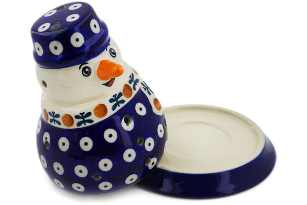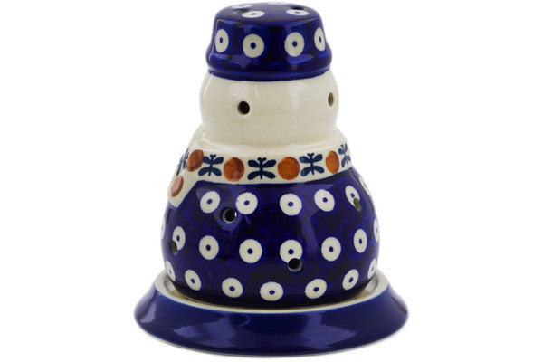 This Mosquito 5" Snowman Candle Holder was handmade and hand decorated in Boleslawiec, Poland by skilled artisans according to old traditional methods. This Polish stoneware is microwave, dishwasher, freezer, and oven safe up to 480°F. It does not contain lead or cadmium. It is part of the Mosquito Collection.