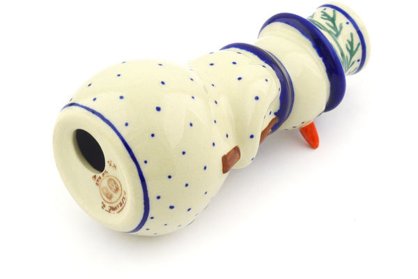 This Pine Boughs 6" Snowman Candle Holder was handmade and hand decorated in Boleslawiec, Poland by skilled artisans according to old traditional methods. This Polish stoneware is microwave, dishwasher, freezer, and oven safe up to 480°F. It does not contain lead or cadmium. It is part of the Pine Boughs Collection.
