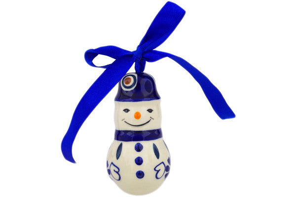 This Peacock 3" Snowman Ornament was handmade and hand decorated in Boleslawiec, Poland by skilled artisans according to old traditional methods. This Polish stoneware is microwave, dishwasher, freezer, and oven safe up to 480°F. It does not contain lead or cadmium. It is part of the Peacock Collection.