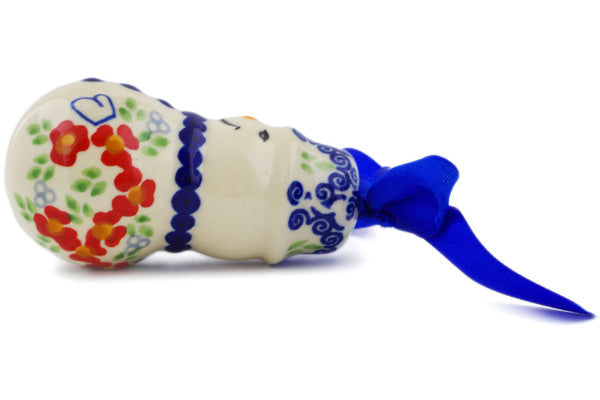 This Red Chains 3" Snowman Ornament was handmade and hand decorated in Boleslawiec, Poland by skilled artisans according to old traditional methods. This is a Polish pottery Signature Unikat, which means that it has been hand painted with both sponges and brushes and it is signed by the artist who painted it. Unikat pieces are the most intricate works of art. Larger Unikat items take hours of very careful work to finish. This Polish stoneware is microwave, dishwasher, freezer, and oven safe up to 480°F. It does not contain lead or cadmium. It is part of the Red Chains Collection.
