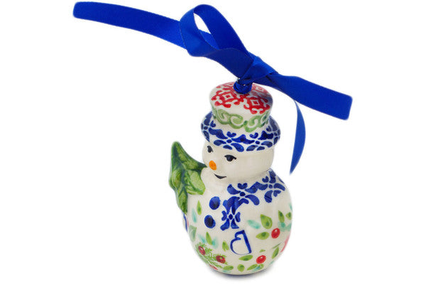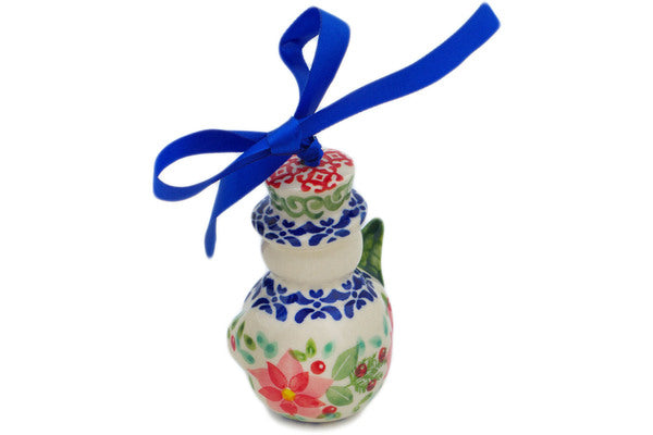 This Precious Pentas 4" Snowman Ornament was handmade and hand decorated in Boleslawiec, Poland by skilled artisans according to old traditional methods. This is a Polish pottery Signature Unikat, which means that it has been hand painted with both sponges and brushes and it is signed by the artist who painted it. Unikat pieces are the most intricate works of art. Larger Unikat items take hours of very careful work to finish. This Polish stoneware is microwave, dishwasher, freezer, and oven safe up to 480°F. It does not contain lead or cadmium. It is part of the Precious Pentas Collection.