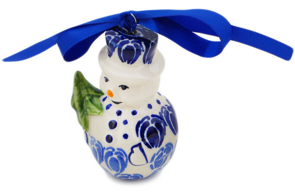 This Retro Blue Tulips 4" Snowman Ornament was handmade and hand decorated in Boleslawiec, Poland by skilled artisans according to old traditional methods. This Polish stoneware is microwave, dishwasher, freezer, and oven safe up to 480°F. It does not contain lead or cadmium. It is part of the Retro Blue Tulips Collection.