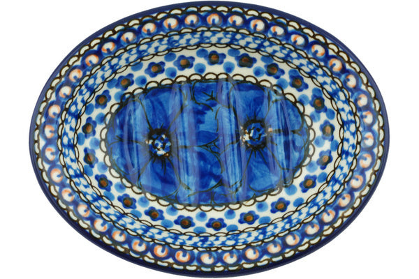 This Cobalt Poppies 5" Soap Dish was handmade and hand decorated in Boleslawiec, Poland by skilled artisans according to old traditional methods. This is a Polish pottery Signature Unikat, which means that it has been hand painted with both sponges and brushes and it is signed by the artist who painted it. Unikat pieces are the most intricate works of art. Larger Unikat items take hours of very careful work to finish. This Polish stoneware is microwave, dishwasher, freezer, and oven safe up to 480°F. It does not contain lead or cadmium. It is part of the Cobalt Poppies Collection.