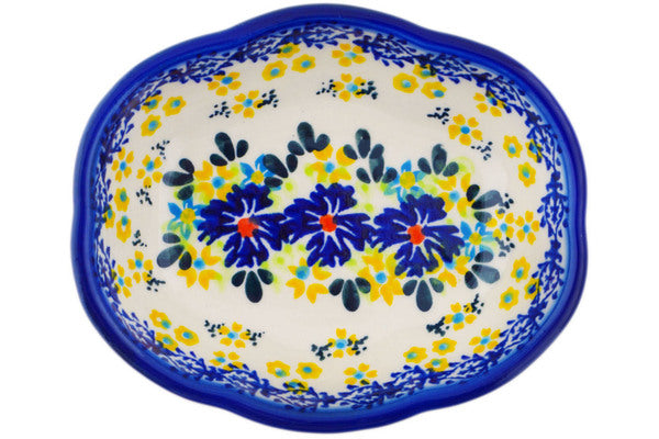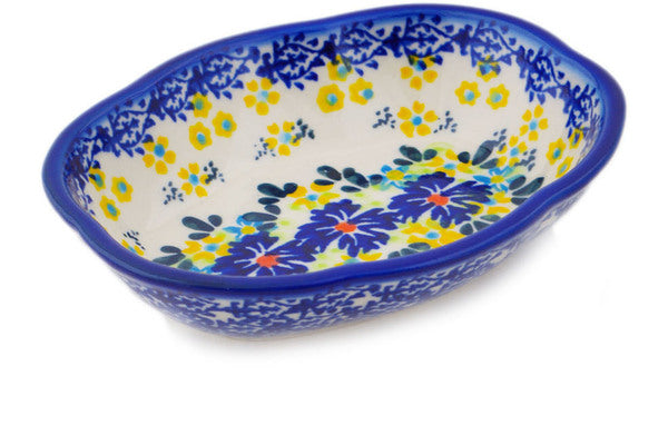 This Cornflower Meadow 5" Soap Dish was handmade and hand decorated in Boleslawiec, Poland by skilled artisans according to old traditional methods. This Polish stoneware is microwave, dishwasher, freezer, and oven safe up to 480°F. It does not contain lead or cadmium. It is part of the Cornflower Meadow Collection.