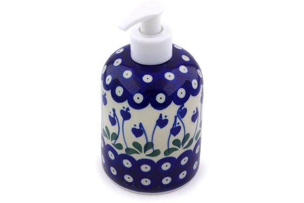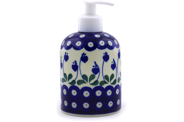 This Bleeding Heart Peacock 5" Soap Dispenser was handmade and hand decorated in Boleslawiec, Poland by skilled artisans according to old traditional methods. This Polish stoneware is microwave, dishwasher, freezer, and oven safe up to 480°F. It does not contain lead or cadmium. It is part of the Bleeding Heart Peacock Collection.
