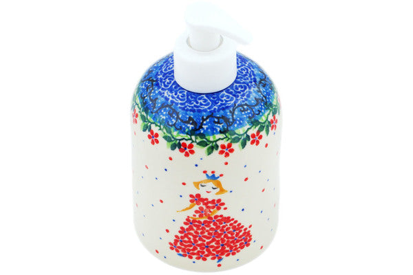 This Princess In A Red Dress 5" Soap Dispenser was handmade and hand decorated in Boleslawiec, Poland by skilled artisans according to old traditional methods. This Polish stoneware is microwave, dishwasher, freezer, and oven safe up to 480°F. It does not contain lead or cadmium. It is part of the Princess In A Red Dress Collection.