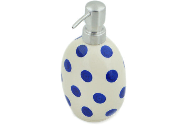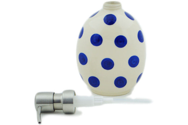 This Blue Polka Dot Beauty 6" Soap Dispenser was handmade and hand decorated in Boleslawiec, Poland by skilled artisans according to old traditional methods. This Polish stoneware is microwave, dishwasher, freezer, and oven safe up to 480°F. It does not contain lead or cadmium. It is part of the Blue Polka Dot Beauty Collection.