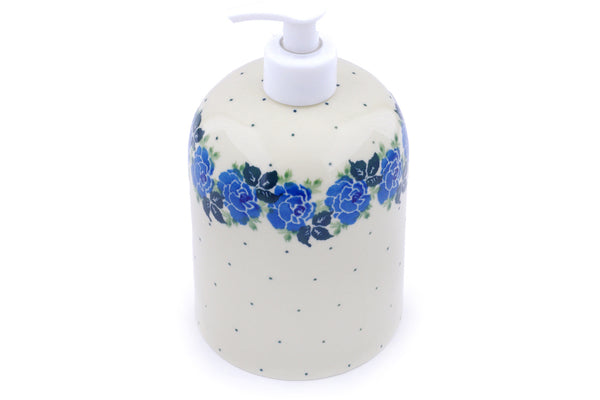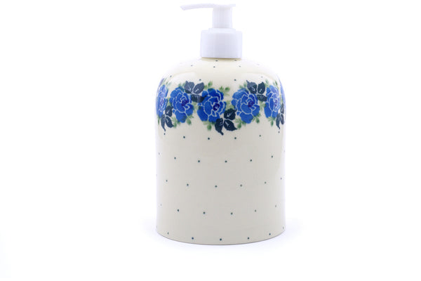This Blue Rose 7" Soap Dispenser was handmade and hand decorated in Boleslawiec, Poland by skilled artisans according to old traditional methods. This Polish stoneware is microwave, dishwasher, freezer, and oven safe up to 480°F. It does not contain lead or cadmium. It is part of the Blue Rose Collection.