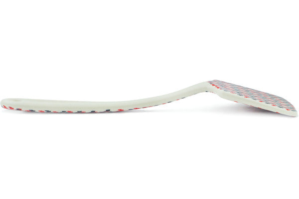 This Bold Houndstooth 12" Spatula was handmade and hand decorated in Boleslawiec, Poland by skilled artisans according to old traditional methods. This Polish stoneware is microwave, dishwasher, freezer, and oven safe up to 480°F. It does not contain lead or cadmium. It is part of the Bold Houndstooth Collection.