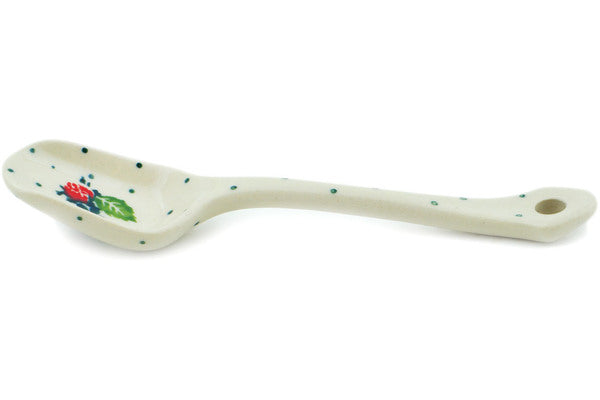 This Rose Garden 5" Sugar Spoon was handmade and hand decorated in Boleslawiec, Poland by skilled artisans according to old traditional methods. This Polish stoneware is microwave, dishwasher, freezer, and oven safe up to 480°F. It does not contain lead or cadmium. It is part of the Rose Garden Collection.