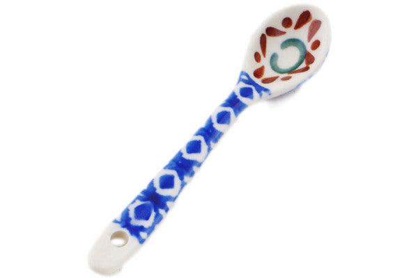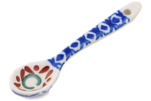 This Morning Sunrise 4" Spoon was handmade and hand decorated in Boleslawiec, Poland by skilled artisans according to old traditional methods. This Polish stoneware is microwave, dishwasher, freezer, and oven safe up to 480°F. It does not contain lead or cadmium. It is part of the Morning Sunrise Collection.