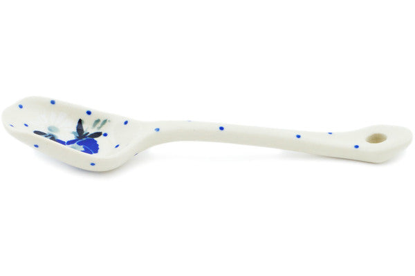 This Daisy Crown 5" Sugar Spoon was handmade and hand decorated in Boleslawiec, Poland by skilled artisans according to old traditional methods. This Polish stoneware is microwave, dishwasher, freezer, and oven safe up to 480°F. It does not contain lead or cadmium. It is part of the Daisy Crown Collection.