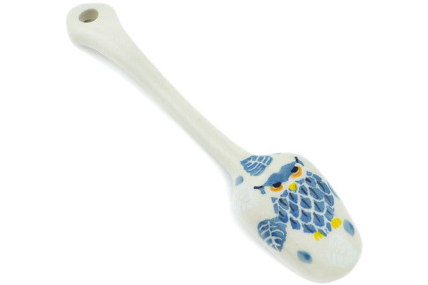 This Pastel Hooter 5" Sugar Spoon was handmade and hand decorated in Boleslawiec, Poland by skilled artisans according to old traditional methods. This is a Polish pottery Signature Unikat, which means that it has been hand painted with both sponges and brushes and it is signed by the artist who painted it. Unikat pieces are the most intricate works of art. Larger Unikat items take hours of very careful work to finish. This Polish stoneware is microwave, dishwasher, freezer, and oven safe up to 480°F. It does not contain lead or cadmium. It is part of the Pastel Hooter Collection.